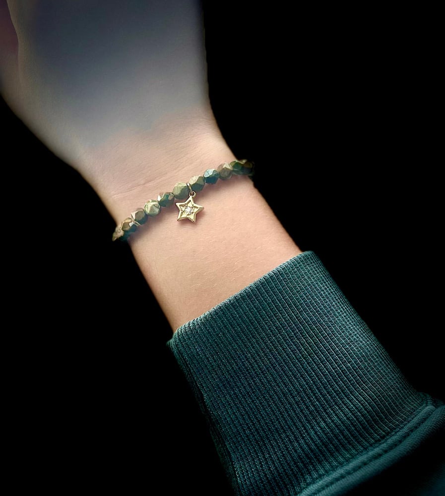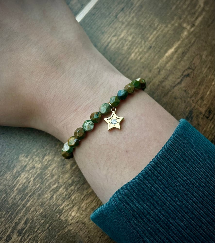 Rainforest Rhyolite Beads 18K Gold Filled Star Charm